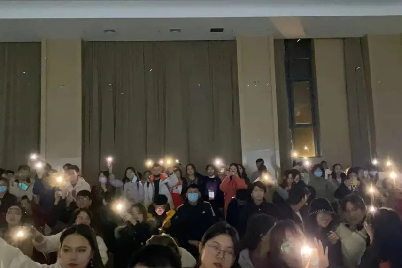 师生们在丰台校区明德楼深情告白民大