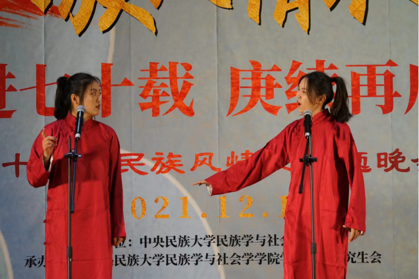 中华文化博大精深,文字更是拥有无限的可能性。由民社学子表演的相声《童年趣事》,充分展现了传统相声的魅力,为大家呈现了一场雅俗共赏的舞台表演,淋漓尽致的表现力让现场观众折服,勾起大家满满的回忆。