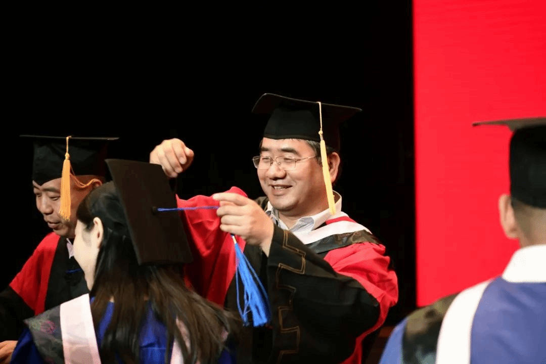 学位授予环节,在主席台就座的导师代表为2024届毕业生授予学位证书、拨穗正冠并合影留念。