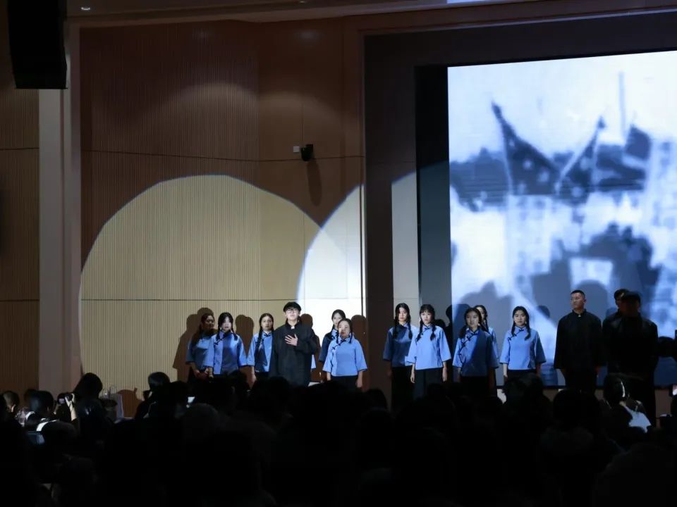合唱《错位时空》感人肺腑,当五四青年与现代青年相逢,不同的时代,怀揣同一份信仰。一句句振奋人心的念白、各声部交织演绎的合唱,抒发了缅怀先烈、热爱祖国的真挚情感。