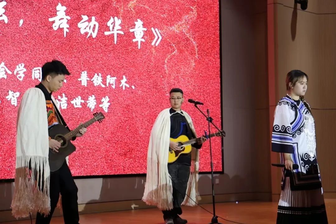 第十九届“民族风情夜”主题晚会在丰台校区明德楼共美厅举行。晚会分为“榴花情深,启航筑梦”“奋楫扬帆,同心逐梦”“赓续前行,青春圆梦”三个篇章,共同展现“携谐共歌舞,容融中国心”的主题。学院党委书记胡华征,副院长薛寒冰、彭菲,党委副书记张肜肜,教师代表与350名同学们欢聚一堂。这个夜晚,学院师生同心,民族风韵共融,逐梦之声共鸣。