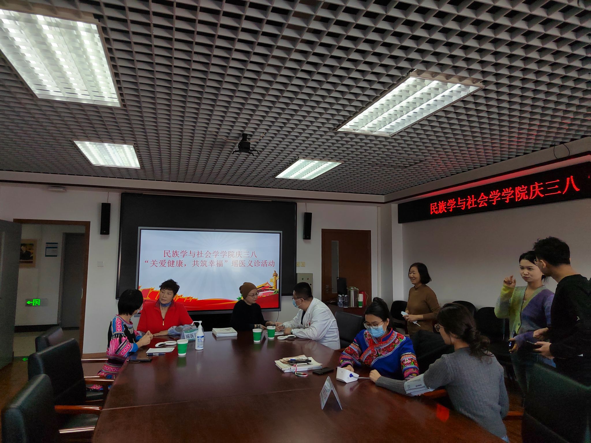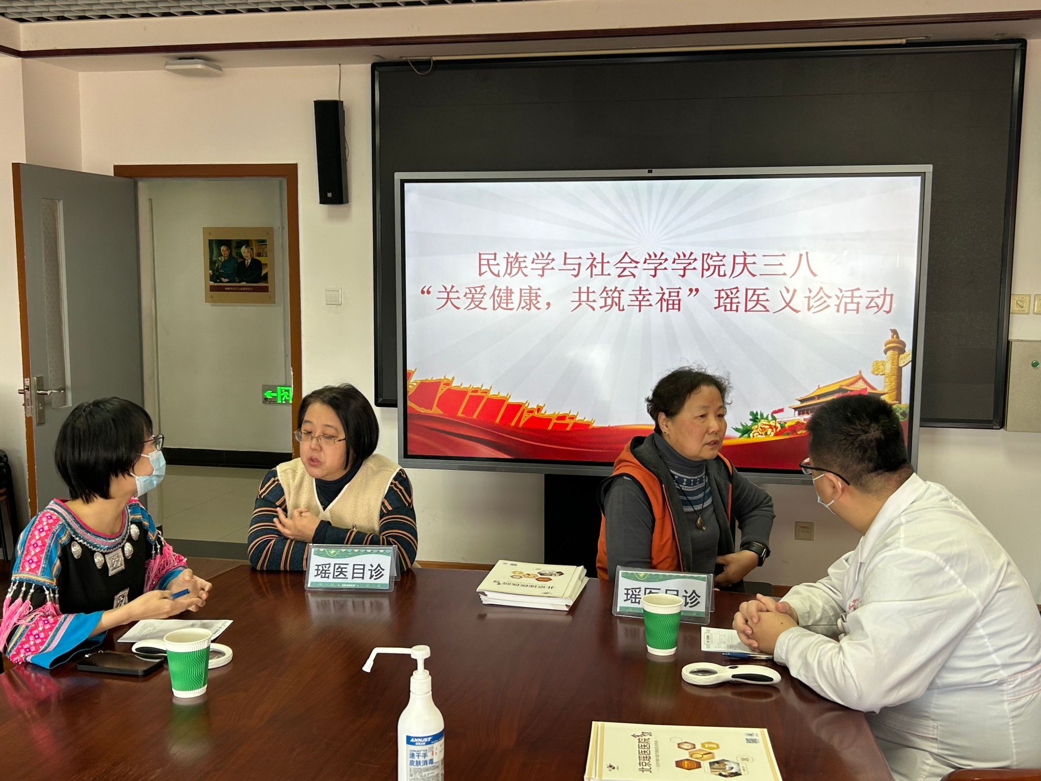 分工会主办、民族学教工党支部协办的“关爱健康·共筑幸福”瑶医义诊活动在文华楼1304会议室举行。学院党委书记胡华征,党委副书记、纪委书记兼工会主席张肜肜,民族学教工党支部书记施琳、组织委员区缵参加了活动。