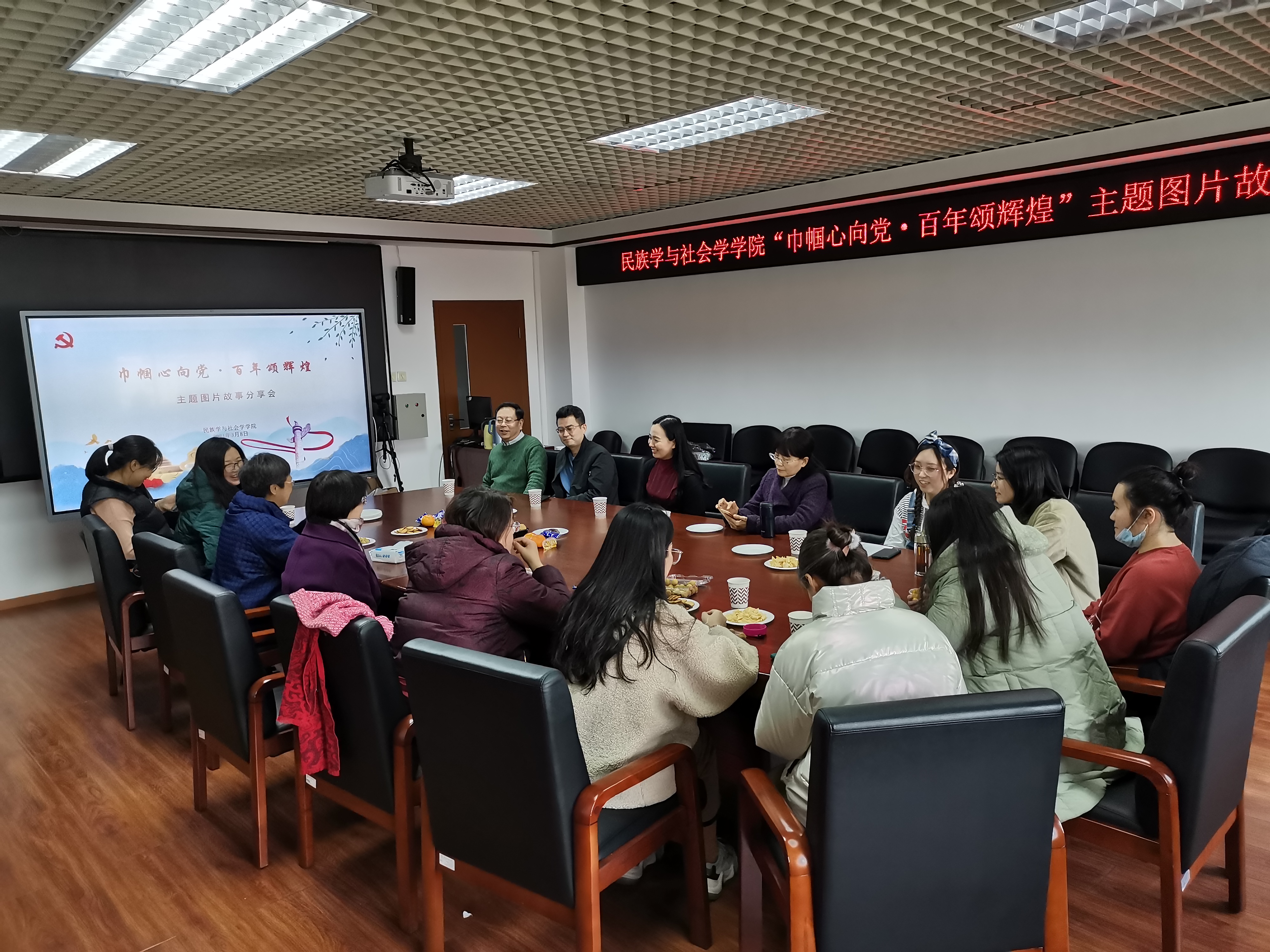 在文华楼1304会议室举办“巾帼心向党,百年颂辉煌”主题图片故事分享活动,展示在党史、新中国史、改革开放史、社会主义发展史和校史上的巾帼风采,激励广大女职工同心共筑中国梦。学院党委书记王洁、副院长巫达、黄志辉莅临现场送祝福,活动由党委副书记、工会主席张肜肜主持。