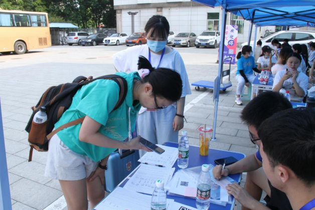报到处的志愿者非常热心地把我送到了宿舍,并主动和我提起校园的大事小事,报到路上有志愿者们的帮忙很省心!