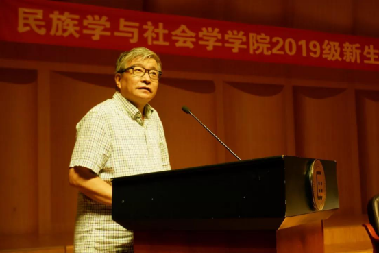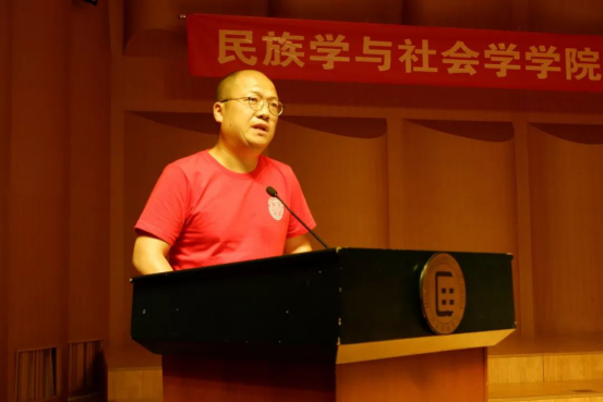 麻国庆教授发表了热情洋溢的致辞。他首先代表学院向新生表示热烈欢迎,接着介绍了学院民族学、社会学、考古学等学科的优秀传统,阐释了学术传承的重要意义和不同学科之间携手发展学术共同体的理念。此外,他还强调了“田野”的重要性,鼓励同学们在田野中发现过去,阅读社会,在文明互鉴背景下探讨不同文化之间的美美与共的相处之道。他还尤其强调了对于心态的研究,谈及了人类发展史上的四个重要时段的不同心态。最后,麻国庆副校长提出了对新生的期待,希望大家更加关注全球化、国际化,并且做到习近平总书记所要求的“爱国、立志、求真、力行”,成为社会栋梁,为国家建设添砖加瓦。