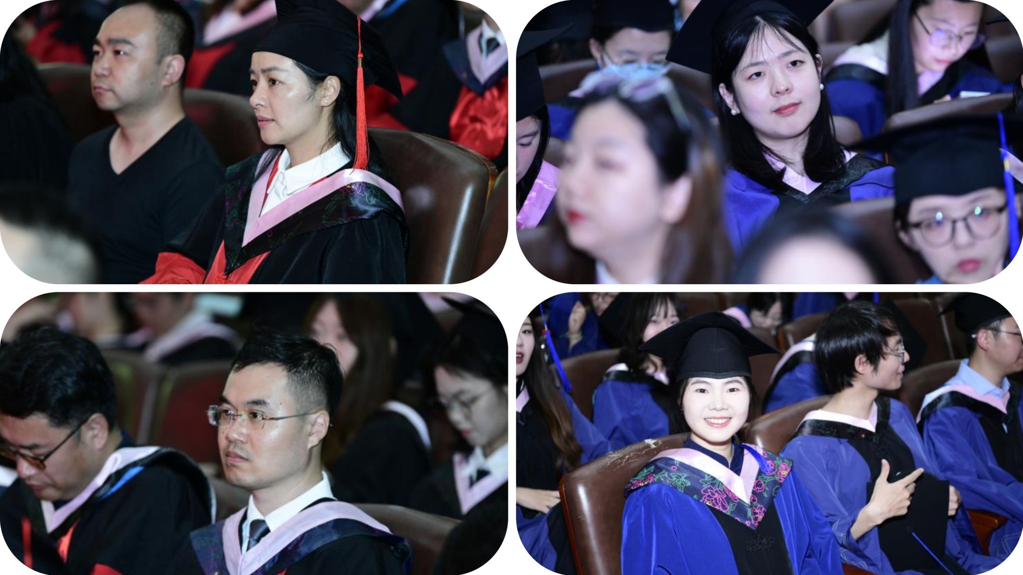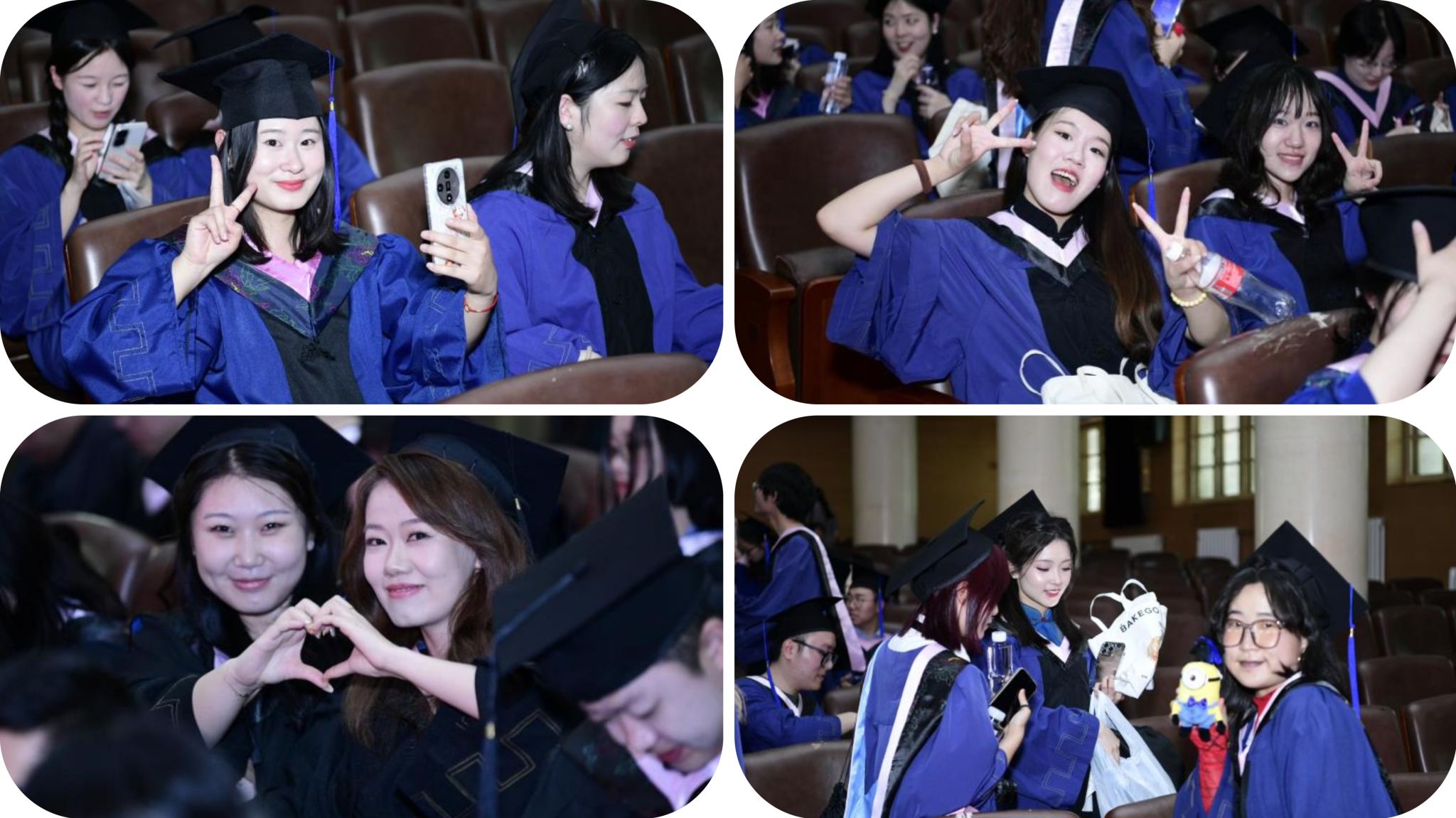 学位授予环节,在主席台就座的导师代表为2025届毕业生授予学位证书、拨穗正冠并合影留念。