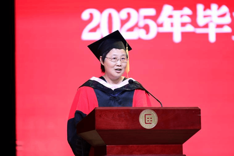 教师代表杨菊华深情回顾了同学们在校期间的成长历程,感谢他们赋予教师职业的活力。面对人类社会“百年未有之大变局”下的深刻变迁与挑战,她殷切期望毕业生们秉持“社会学的想象力”,勇敢探索时代星辰大海,于细微处洞察宏阔历史。嘱托毕业生们要在人生逆旅中淬炼意志,践行“修己安人、兼济天下”的情怀与民大“美美与共、知行合一”精神,在服务社会中实现价值。