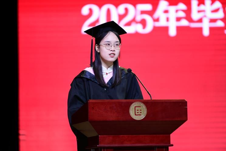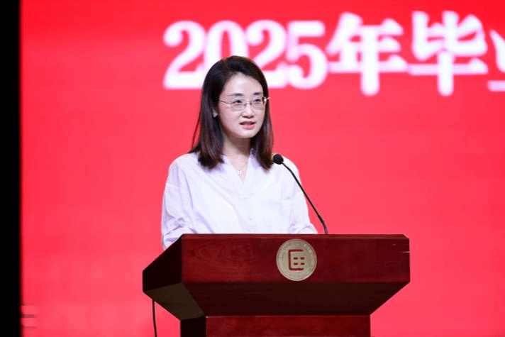 2003级民族学本科生、2007级民族学硕士生,现民生期货有限公司行政人力部总经理常琛作为院友代表发言。她深情追忆了在学院的求学生活,并向学弟学妹们提出了宝贵建议:既要保持批判思维,对社会保持敏锐洞察;又要秉持终身学习的韧性,不断提升理解与分析社会问题的能力。最后,常琛向全体毕业生献上美好祝福,祝愿母校发展蒸蒸日上。